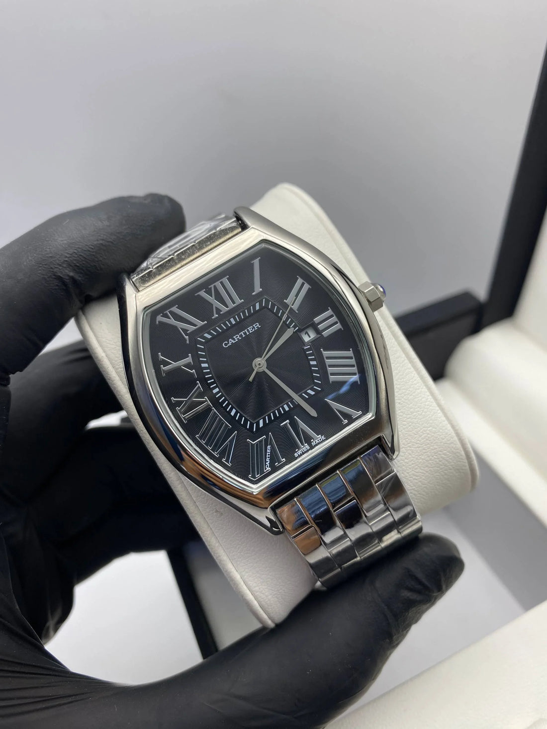 Montre Moderne en Acier de Cartier Design audacieux : Cette montre présente un cadran noir élégant,...