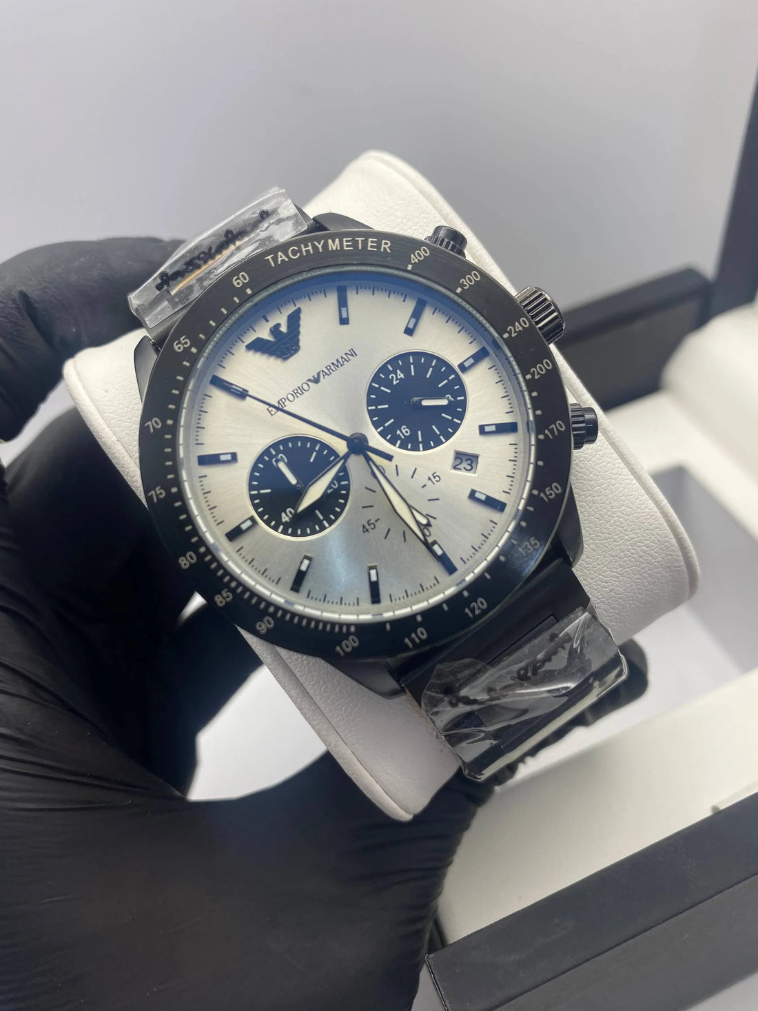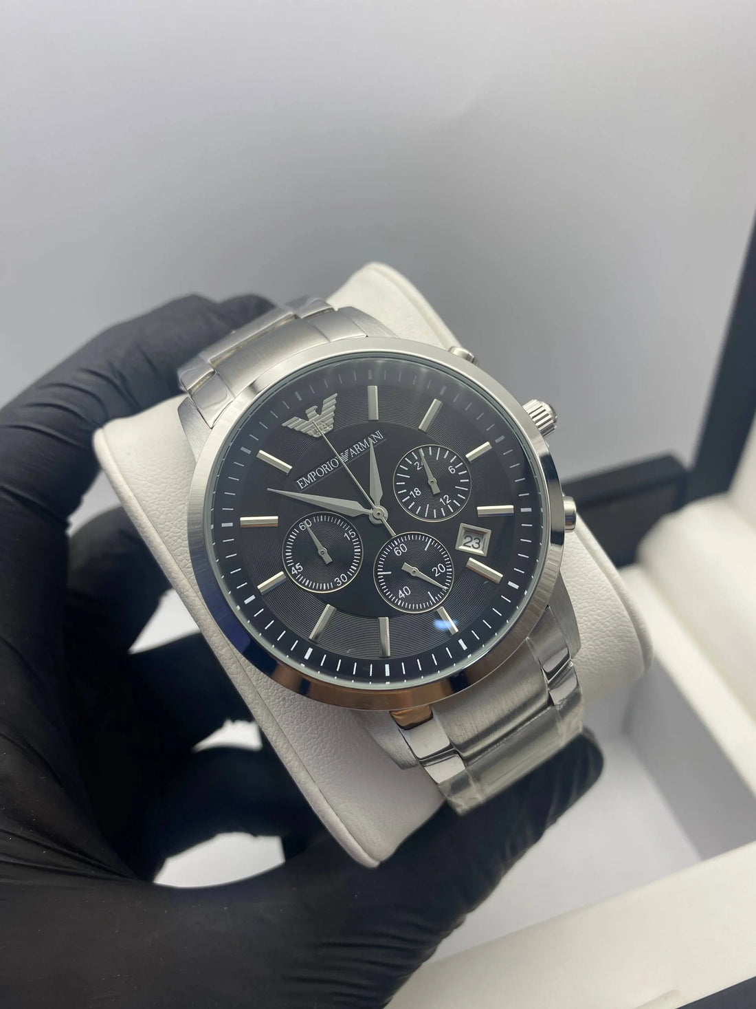 Élégance Sombre : Montre Chronographe au Cadran Argenté Design raffiné : Cette montre se distingue par...