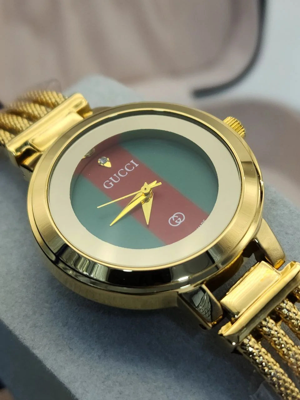 Style audacieux : La montre Gucci se distingue par son design vibrant et unique. Son boîtier doré confère une touche de luxe, tandis que le cadran coloré crée un effet accrocheur.